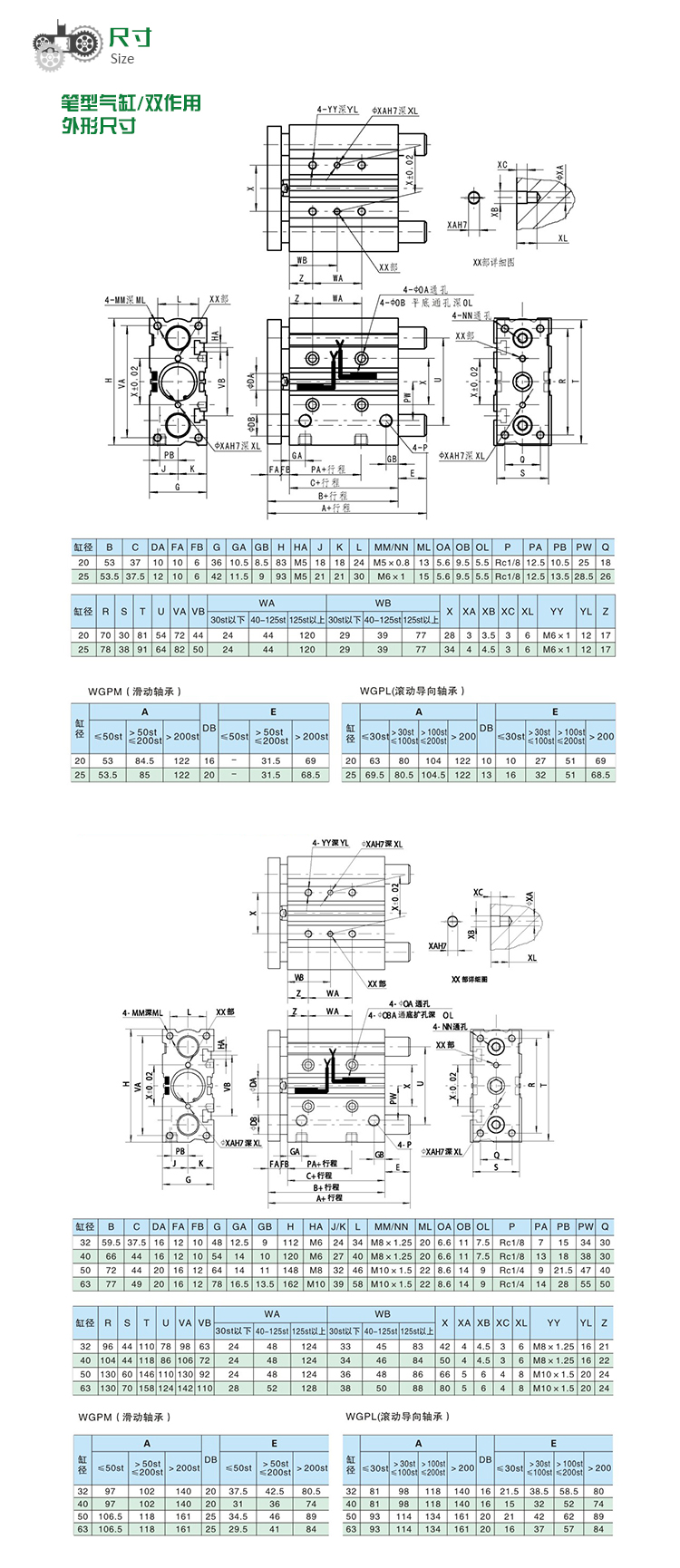 缸徑:20 25 32 40 50 63