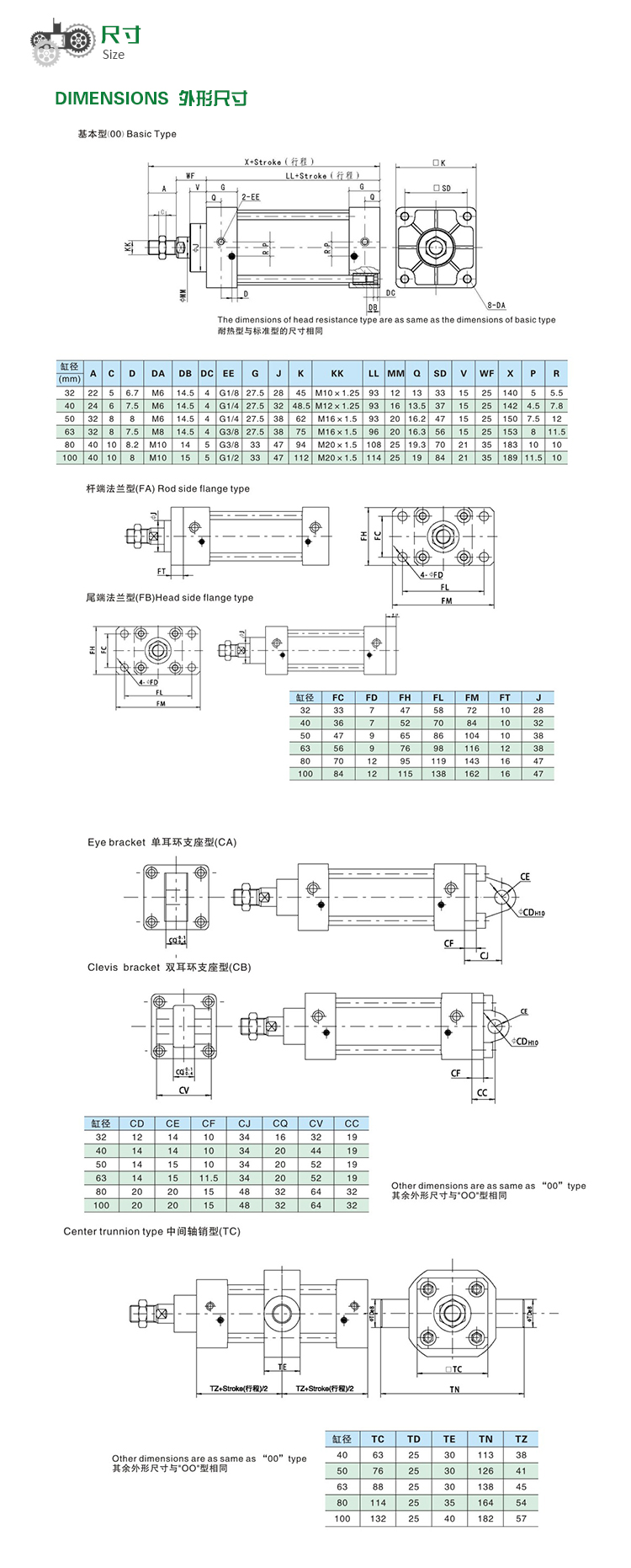 缸徑:Ф32 Ф40 Ф50 Ф63 Ф80 Ф100