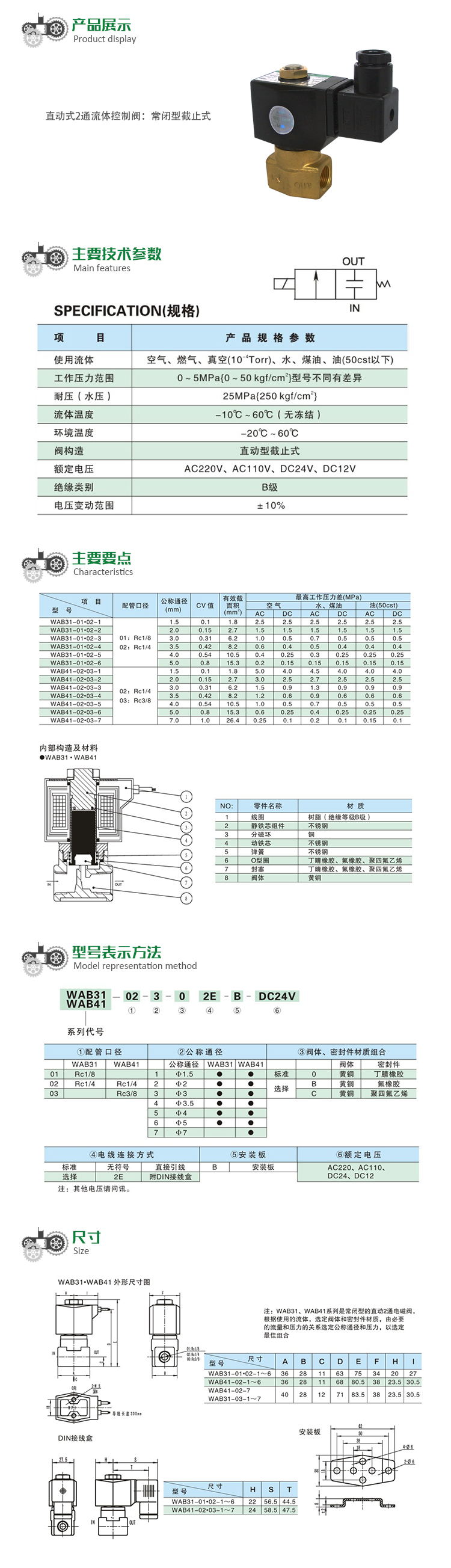 WAB31.41系列 直動式2通流體控制閥:常閉型截止式
