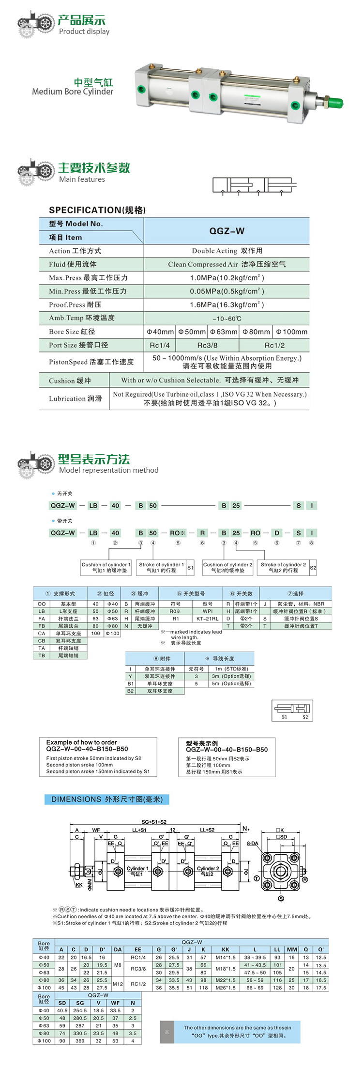 JIS QGZ-W 中型氣缸