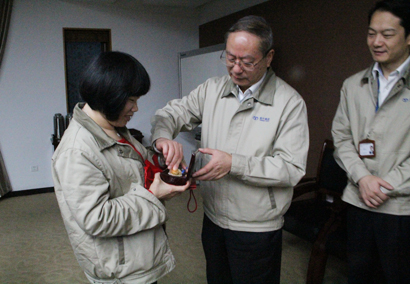 2014年11月11日下午,集團(tuán)董事長竺韻德向公司3名司齡滿20年的退休員工頒發(fā)了終身感謝獎-紀(jì)念金幣,并衷心感謝他們與公司風(fēng)雨同舟,茁壯成長。